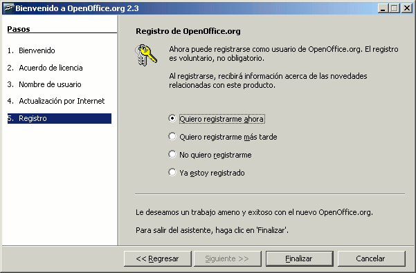 Cuando arranques por primera vez cualquiera de los programas se lanzará el asistente de registro.