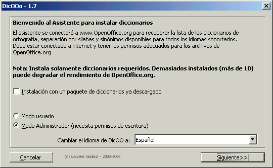 OpenOffice.org se instala en español, pero necesita que le suministremos los componentes necesarios para poder utilizar las herramientas de idioma (ortografía, separación silábica y sinónimos).
