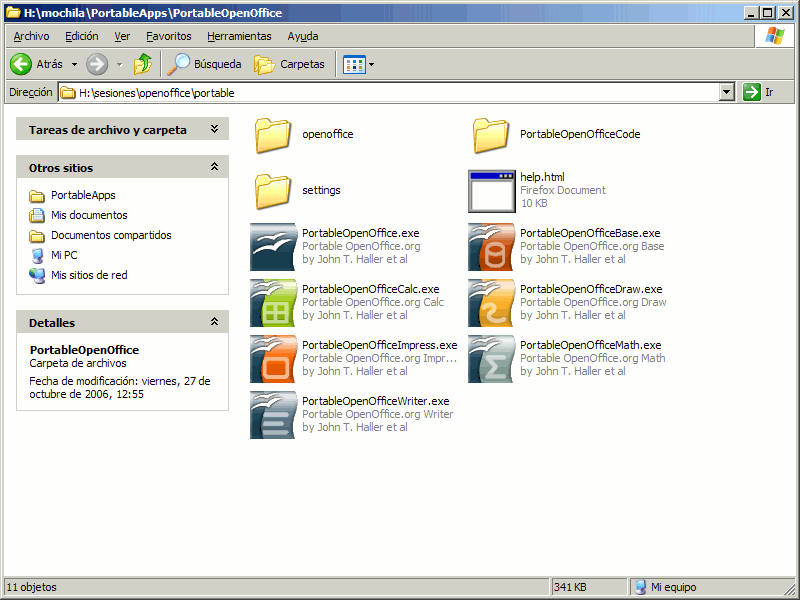 Para estos casos se puede utilizar la versión portátil que no requiere instalación y te permitirá utilizar OpenOffice desde un dispositivo USB. Bastará con que copies la carpeta portable que aparece en la carpeta programas de este cd a tu dispositivo USB y ya podrás arrancar cualquier aplicación de la suite haciendo doble clic en el icono correspondiente.