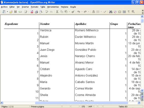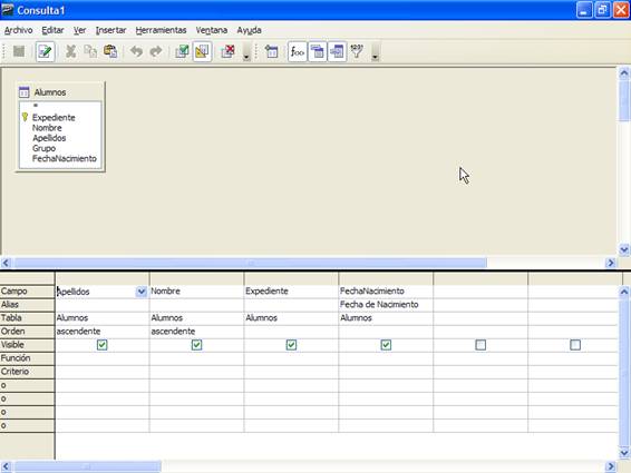 La figura 1.4 muestra el aspecto que tendría una consulta sencilla en OpenOffice Base.