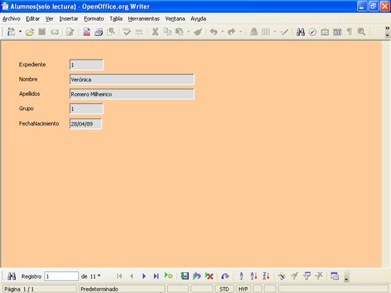 Los formularios nos ayudarán principalmente en tareas de introducción de información. Cuando se trata de incluir pocos datos lo podemos hacer directamente sobre las tablas pero cuando el volumen es importante, este método se vuelve poco eficaz. Para resolver este problema tenemos los formularios donde la inclusión de datos se hace de forma mucho más intuitiva y sencilla. En la figura 1.5 podemos ver un ejemplo de formulario. Además, y al igual que ocurre con las consultas, los formularios también permiten trabajar simultáneamente sobre varias de las tablas de una base de datos.