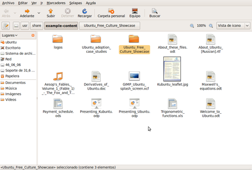 El fichero SpiritOfUbuntu.ogv que se encuentra en la carpeta Ubuntu_Free_Culture_Showcase es un documento audiovisual. Trate de reproducirlo para comprobar que los dispositivos de audio y vídeo de su equipo han sido perfectamente reconocidos y configurados.