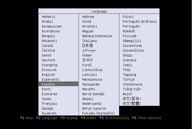 En el menú desplegable que aparece, y utilizando las teclas del cursor, seleccionamos la opción "Español" y pulsamos "Intro".