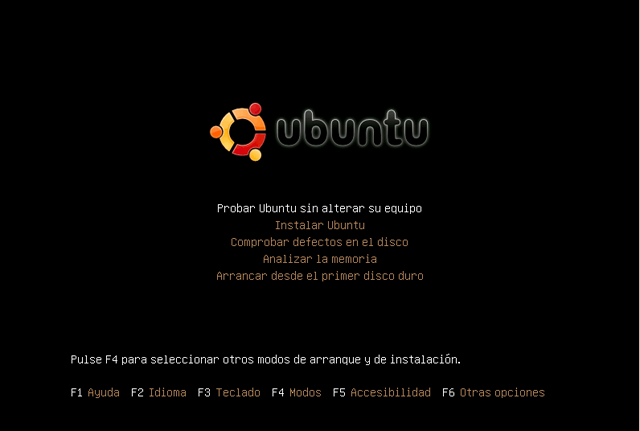 Finalmente nos aseguramos de que está resaltada la opción "Probar Ubuntu sin alterar su equipo" y volvemos a pulsar "Intro". En caso de no estarlo nos moveremos por las distintas opciones utilizando las teclas de cursor.