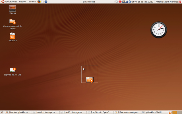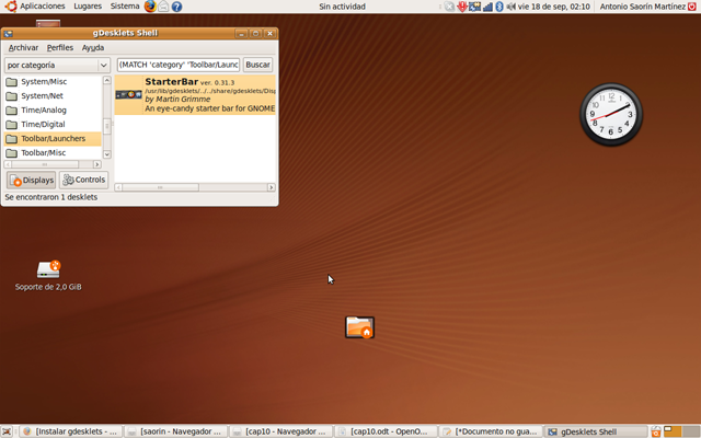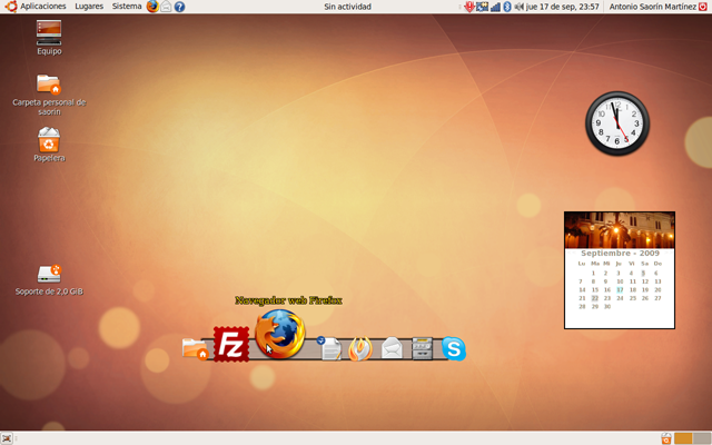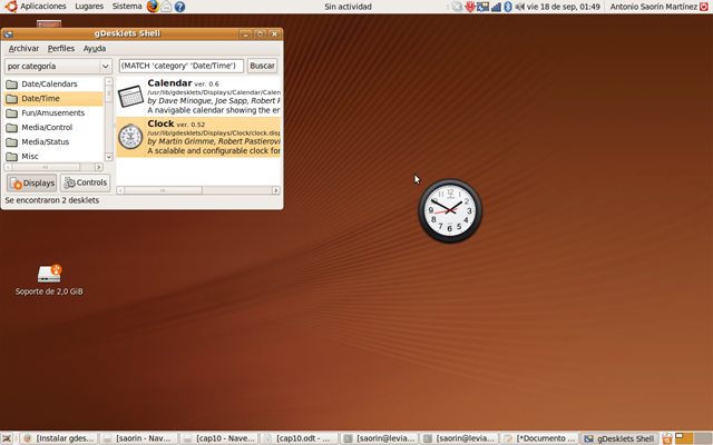 Como ejemplo de cómo se trabaja con esta aplicación vamos a añadir dos elementos a nuestro escritorio: reloj y barra de lanzadores animada.