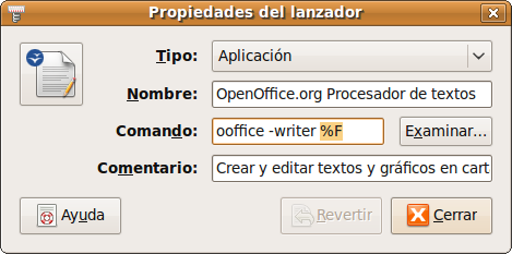 Repita estos pasos para añadir cualquier nuevo lanzador a la barra. Eventualmente puede que algunos de los lanzadores agregados no funcione del todo correctamente y sea necesario editar la configuración. Esto ocurre por ejemplo con Openoffice.org Writer o el navegador web Firefox.