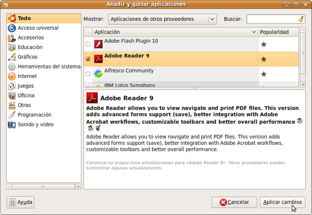 Haga clic en la casilla que hay a la izquierda de la entrada Adobe Reader 9
