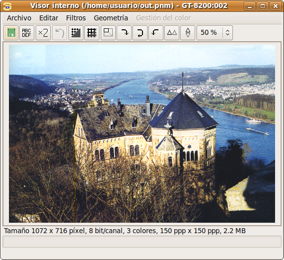 Finalmente la imagen obtenida se nos muestra en el visor interno junto a una barra informativa situada en la parte inferior de la ventana que nos indica las características técnicas de la imagen.