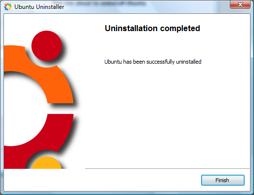 Cuando la desinstalación concluya haga clic en Finish para terminar. Ubuntu habrá desaparecido del sistema y el administrador de arranque ya no lo mostrará.