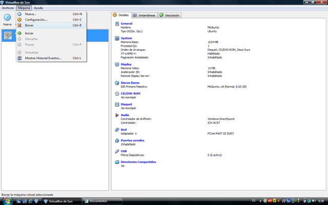 pulsamos el botón Borrar, o bien vamos al menú Máquina→Borrar.