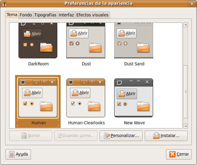 En art.gnome.org (http://art.gnome.org) puede econtrar una gran cantidad de temas para instalar, así como fondos de escritorio y otros recursos gráficos.