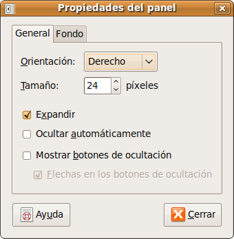 - Orientación: Controla la posición del panel en la pantalla.