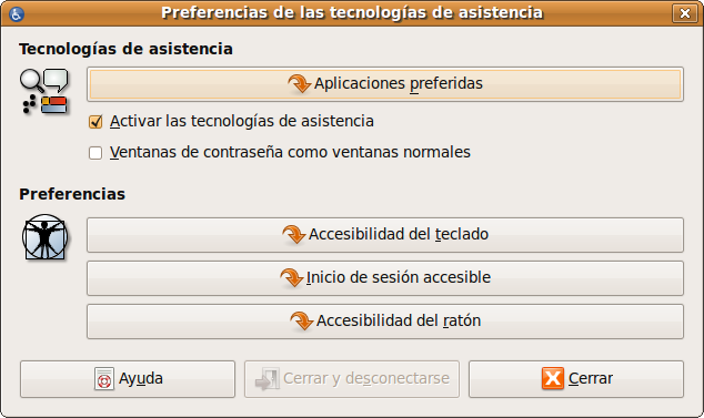 Para activar la accesibilidad use el menú Sistema -> Preferencias -> Tecnologías de asistencia y active la casilla de verificación correspondiente.