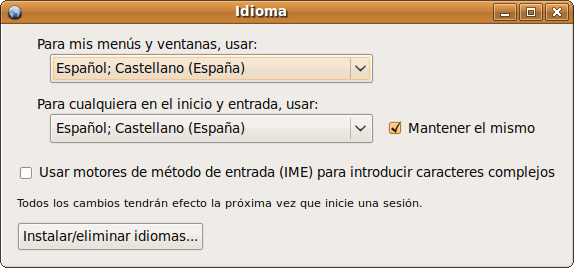 En la parte inferior, observará un botón para Instalar/eliminar idiomas. Al pulsar sobre él obtendrá una ventana con la lista de idiomas disponibles y una casilla de verificación a la derecha de cada uno de ellos. Marque aquellos que desee, así como los componenentes disponibles para cada uno de los seleccionados. Finalmente, pulse sobre Aplicar cambios. Proporcione la contraseña de administración cuando se la solicite y comenzará la descarga de los paquetes necesarios desde Internet.