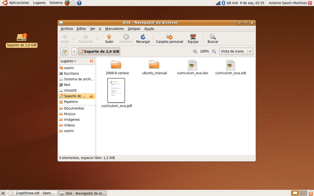 Llaveros de memoria USB. Conectamos el dispositivo en el puerto USB, éste será reconocido por el sistema, se creará un icono en el escritorio y se abrirá una ventana del administrador de archivos mostrándonos sus contenidos. El icono del escritorio tendrá como rótulo Soporte de x GiB, donde x es la capacidad del llavero, por ejemplo Soporte de 2,0 GiB.