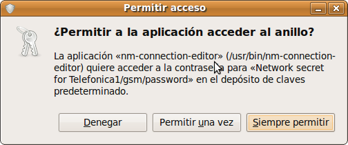 Verá entonces el gestor del depósito de contraseña pidiendo confirmación para acceder a configurar la conexión. Simplemente pulse en Siempre permitir.