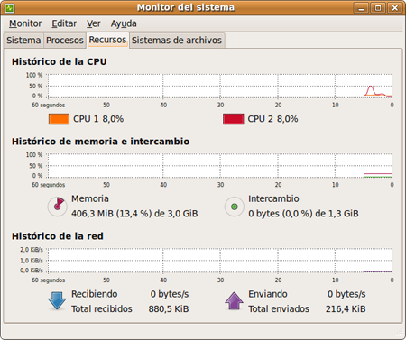 En la ventana que aparece pulse en la pestaña Recursos y examine el tráfico de la red bajo el título Histórico de la red. Sume el total de datos enviados y recibidos y tendrá la cifra del tráfico que ha usado.