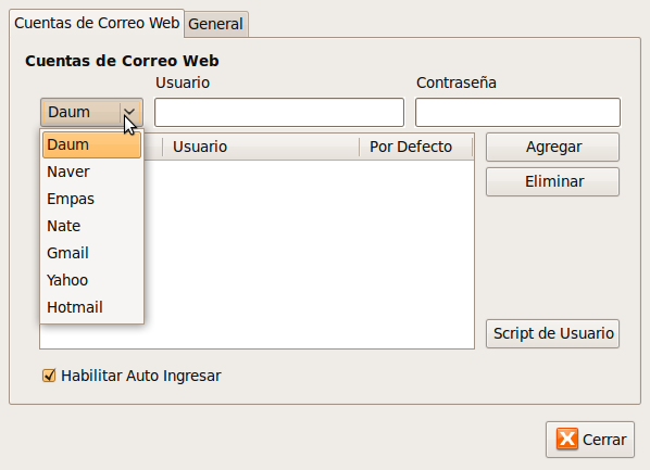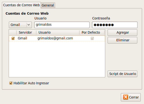Hemos de introducir nuestro nombre de usuario y contraseña, como si accediésemos a la propia web del servidor de correo y podemos marcar la opción Habilitar Auto Ingresar para evitar tener que escribirlos cada vez que vayamos a leer el correo.