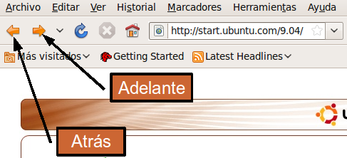 Para avanzar o retroceder a la página inmediatamente anterior o posterior a la actual haga clic en los botones marcados con las flechas Adelante y Atrás.