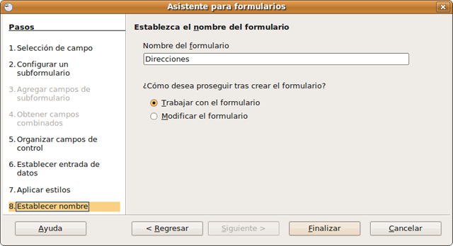 Establecer entrada de datos. Desde aquí especificaremos el modo como se controlará la entrada de datos para el formulario. Es en sí mismo bastante explicativo.