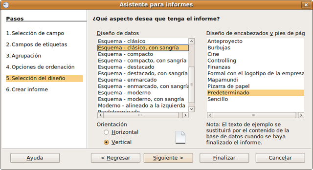 Selección del diseño. Configuramos el diseño del informe utilizando plantillas y estilos.