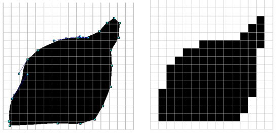 Imágenes vectoriales, aquellas en las que sus elementos gráficos presentan claramente un relleno y un contorno definido mediante fórmulas matemáticas que permiten su escalado sin merma de calidad. Por lo tanto se componen de regiones homogéneas de color y no admiten zonas de transición complejas, a lo sumo, cierto tipo de degradados.