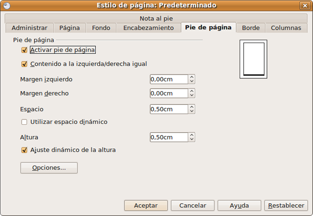 vamos al menú Formato -> Página, y bajo la sección Márgenes cambiamos el