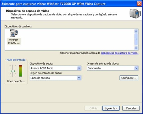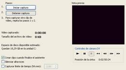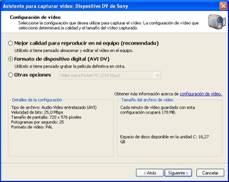 Una vez conectada la cámara al ordenador y encendida en modo VCR o reproducción de la cinta, deberemos elegir en el Asistente para captura de vídeo el dispositivo DV.