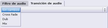 En el modo FX, tenemos las siguientes transiciones de audio:
