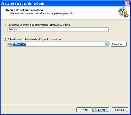 En donde debemos indicar el nombre de la película y la carpeta en la que queremos que se guarde. Pulsando el botón Siguiente, se accede a otra nueva ventana: