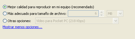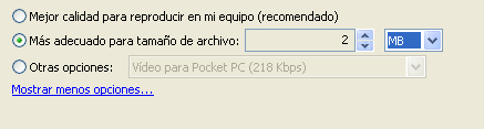 La opción Más adecuado para tamaño de archivo es muy interesante ya que nos permite fijar el tamaño máximo que ha de tener nuestra película, algo fundamental a la hora de conseguir un tamaño de archivo que se pueda enviar pormandar un correo electrónico al tutor, que nunca debe exceder de un tamaño máximo de 2 Mb.