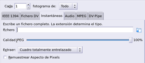 En Extraer tienes dos opciones Cuadro Entrelazado o Desentrelazado. Si el destino de las imágenes para ser visualizadas es un televisor tienes que elegir Entrelazado, si es el monitor de un ordenador será mejor Desentrelazado.
