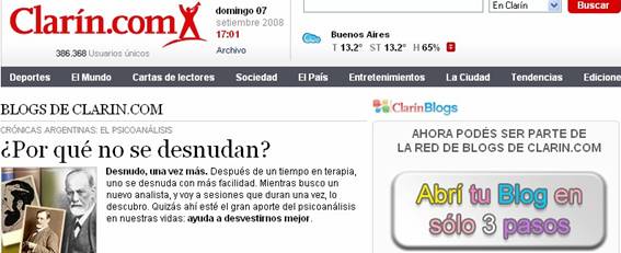 Clarín ha percibido la relevancia del fenómeno blog en el mundo de la comunicación y no sólo ha integrado una serie de blogs de periodistas y colaboradores fijos, sino que ofrece la posibilidad y el soporte gratuito para que cualquier lector pueda crear su propia bitácora.