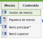 Posteriormente, accedemos al apartado Menús – Gestor de Menús y seleccionaremos el apartado ítem(s) del menú, del Menú Superior.
