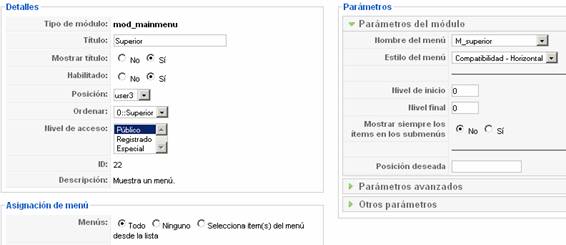 Lo denominamos Menú Superior y le ponemos como nombre único, M_superior.