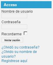 El módulo Acceder, al que llamamos acceso, lo ubicamos en la posición left, bajo el menú principal, y lo asignaremos a todas la páginas. Este menú ya iene configurado por defecto.