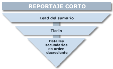 | d.- Reportaje corto. Son relatos que actúan como nexo de continuidad entre hechos importantes y su misión es, por tanto, mantener viva la atención del público. Por eso, hace hincapié en los detalles ambientales y de interés humano. Una pieza indiscutible es el tie-in siempre que se plantee estrictamente como reportaje de continuidad o de pronóstico. Si no puede eliminarse. |