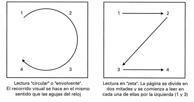 b.- Lectura en Z: la vista va de izquierda a derecha en la parte superior y repite el patrón en la parte inferior.