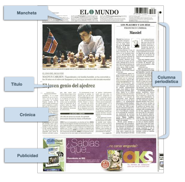 - Los créditos: espacio de la cabecera destinado a los datos de la empresa editora o del propio periódico (dirección, teléfono, fax...). En los diarios españoles no suelen aparecer.