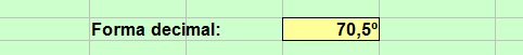 La E19 contiene la fórmula =C17+E17/60+G17/3600 y sin embargo lo que está escrito en ella es 70,5º.