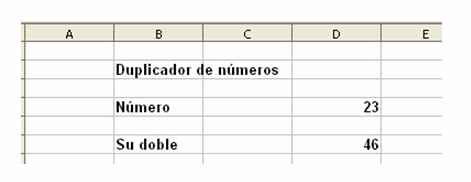 En la B4 escribe Número, en la C4 23, en la B6 el texto Su doble y en la C6 la fórmula =C4*2. De esta forma la celda C6 contendrá siempre el doble de la C4.