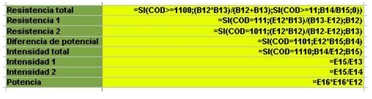 Todas las fórmulas de la zona de cálculo, mediante la función SI eligen la fórmula adecuada según el valor del código.