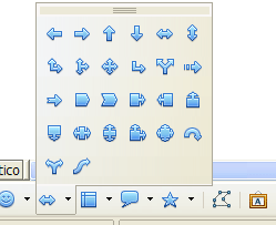 Las flechas de abajo a la derecha se insertan con la misma barra. Las dos flechas azules que apuntan a la derecha se han construido con el botón de flechas de bloque de la Barra de Dibujo