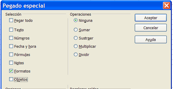 En el apartado Selección desactiva todas las opciones dejando tan sólo la de Formatos.