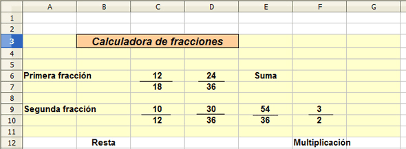 Para seguir bien la explicación es conveniente que respetes las celdas en la que figuran los datos de las fracciones: