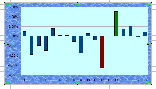 Pulsa con doble clic y recorre los distintos elementos para cambiarles sus características. Por ejemplo, la superficie del gráfico o el interior de las mismas barras se puede rellenar con un mapa de bits, al plano lateral con un color distinto, igual que las barras, etc.