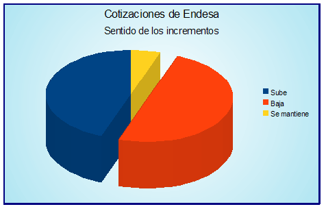 Como final de la práctica construiremos un gráfico circular (o de sectores, o de tarta) que represente el porcentaje de días en los que la acción ha subido y el de aquellos en los que ha bajado.
