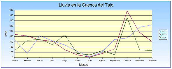 Como primer ejercicio de esta sesión te proponemos estudiar la lluvia caída en la Cuenca del Tajo en los años 2002, 2003 y 2004.