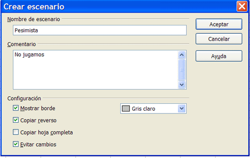 Una vez seleccionadas las celdas, pide Herramientas > Escenarios y da nombre y comentarios al primer escenario que crearás.