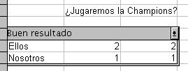 Si deseas construirte un escenario propio, deberás comenzar por seleccionar el rango de celdas que lo contendrá. Por ejemplo, imagina un seguidor de un club de fútbol que está impaciente por ver si su equipo se clasificará o no para jugar la Liga de Campeones. Como hay varios aspirantes, él quiere calcular las clasificaciones según los resultados que se produzcan en la próxima jornada. Para simplificar, sólo consideraremos un rival y no incluiremos clasificaciones.